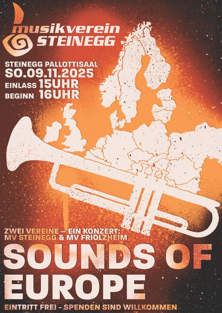 Zum zweiten Mal finden sich die Musikvereine Friolzheim und Steinegg zu einem großen Projektorchester zusammen. Unter dem Titel "Sounds Of Europe" präsentieren wir eine musikalische Reise quer durch Europa.