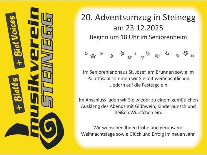 Seit 10 Jahren dirigiert uns nun Tilo Schneider. Kinder, wie die Zeit vergeht. Zu diesem Anlass präsentieren wir ein "Best of", aber auch neue Titel. Darüber hinaus freuen wir uns über die Mitwirkung unseres Jugendorchesters "Bietls".